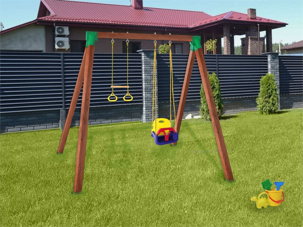 Обратите внимание! Деревянный каркас из опор-стоек, деревянные перекладины для качелей, комплект крепежных элементов (саморезы, анкеры) не включены в комплект.