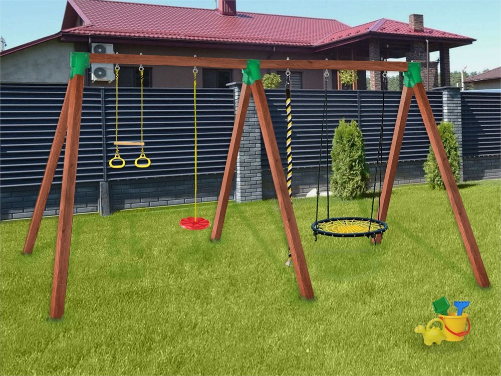 Преимущества комплекта Air-swing plus очевидны: он позволяет сэкономить средства на заказе и доставке готовой конструкции и дает возможность реализовать собственные дизайнерские идеи. Вы можете выбрать любой подходящий материал и цвет дерева брусьев от классических оттенков до любых ярких сочных или матовых оттенков, создавая уникальный предмет интерьера, идеально вписывающийся в ваш ландшафт.