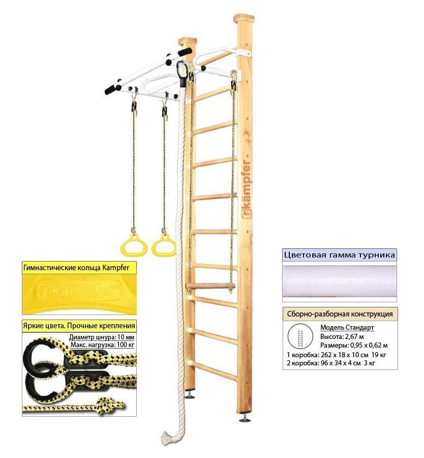 Шведская стенка Kampfer Helena Ceiling (№1 Натуральный Стандарт белый турник)