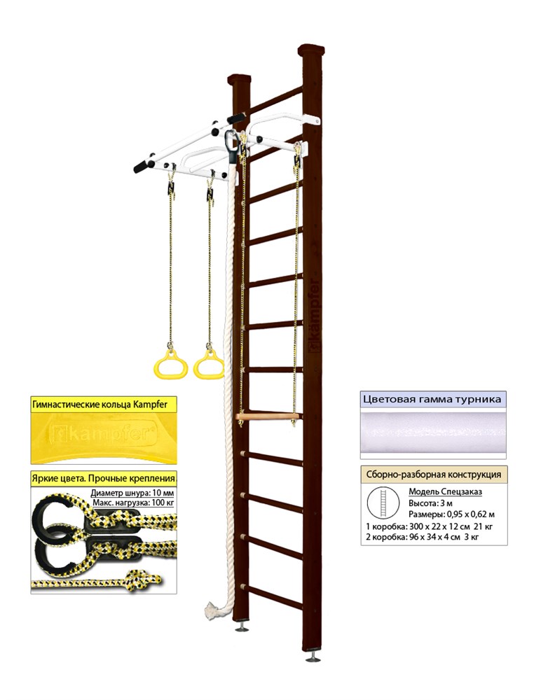 Шведская стенка Kampfer Helena Ceiling (№5 Шоколадный Высота 3 м белый турник)