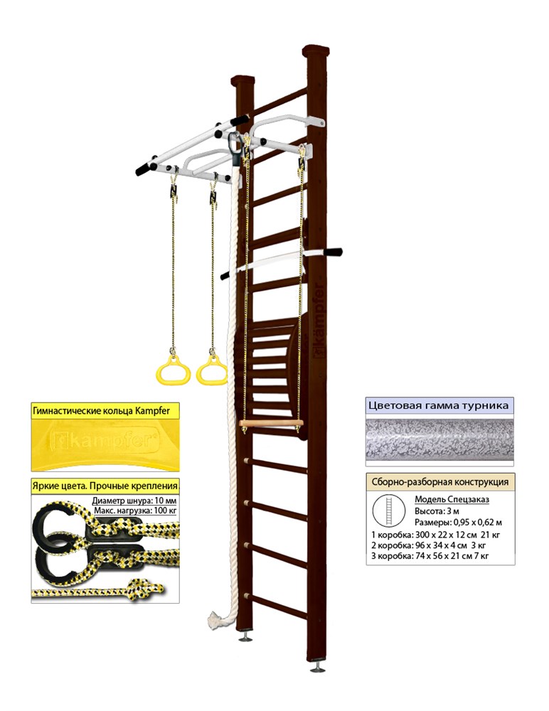 Шведская стенка Kampfer Helena Maxi Ceiling (№5 Шоколадный Высота 3 м белый антик турник)