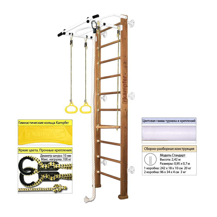 Шведская стенка Kampfer Helena Wall (№2 Ореховый Стандарт белый турник)