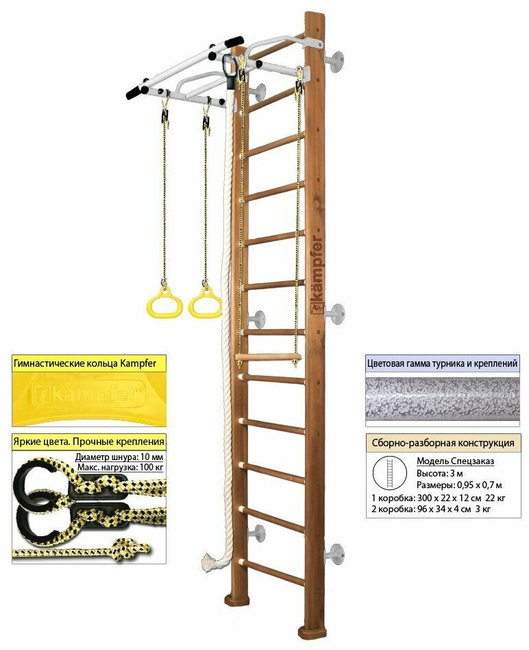 Шведская стенка Kampfer Helena Wall (№2 Ореховый Высота 3 м белый антик турник)