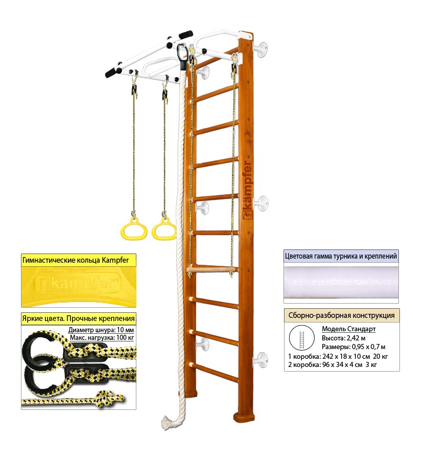 Шведская стенка Kampfer Helena Wall - это деревянный детский спортивный комплекс, который станет отличным выбором для активного и здорового развития вашего ребенка.