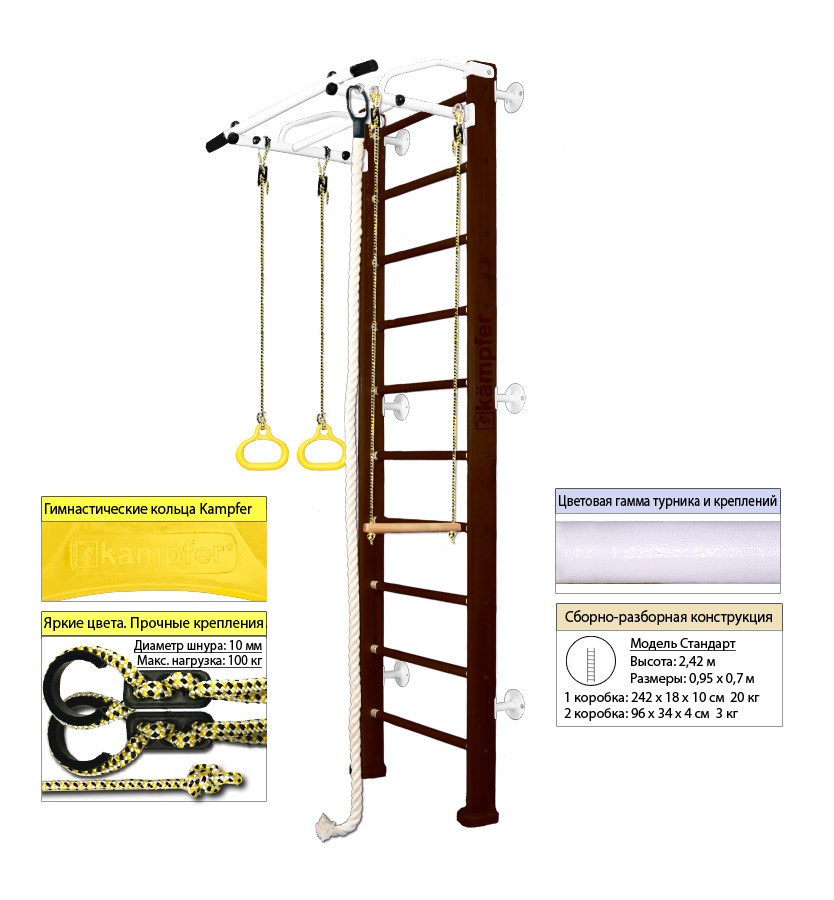 Шведская стенка Kampfer Helena Wall (№5 Шоколадный Стандарт белый турник)