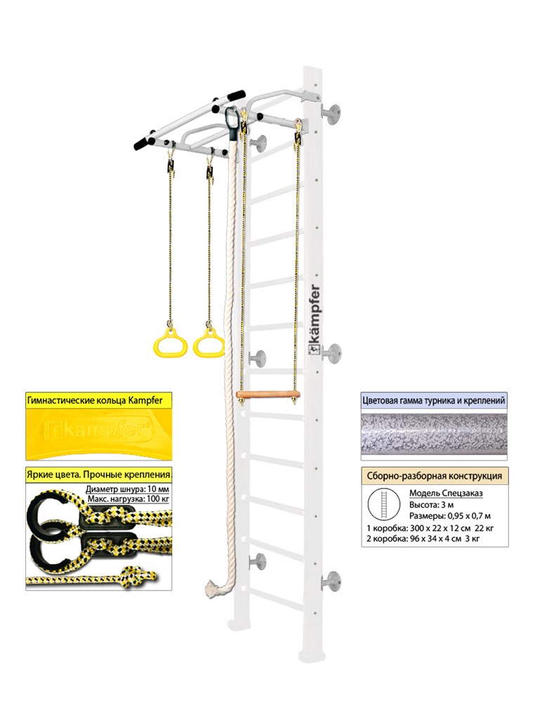 Шведская стенка Kampfer Helena Wall (№6 Жемчужный Высота 3 м белый антик турник)