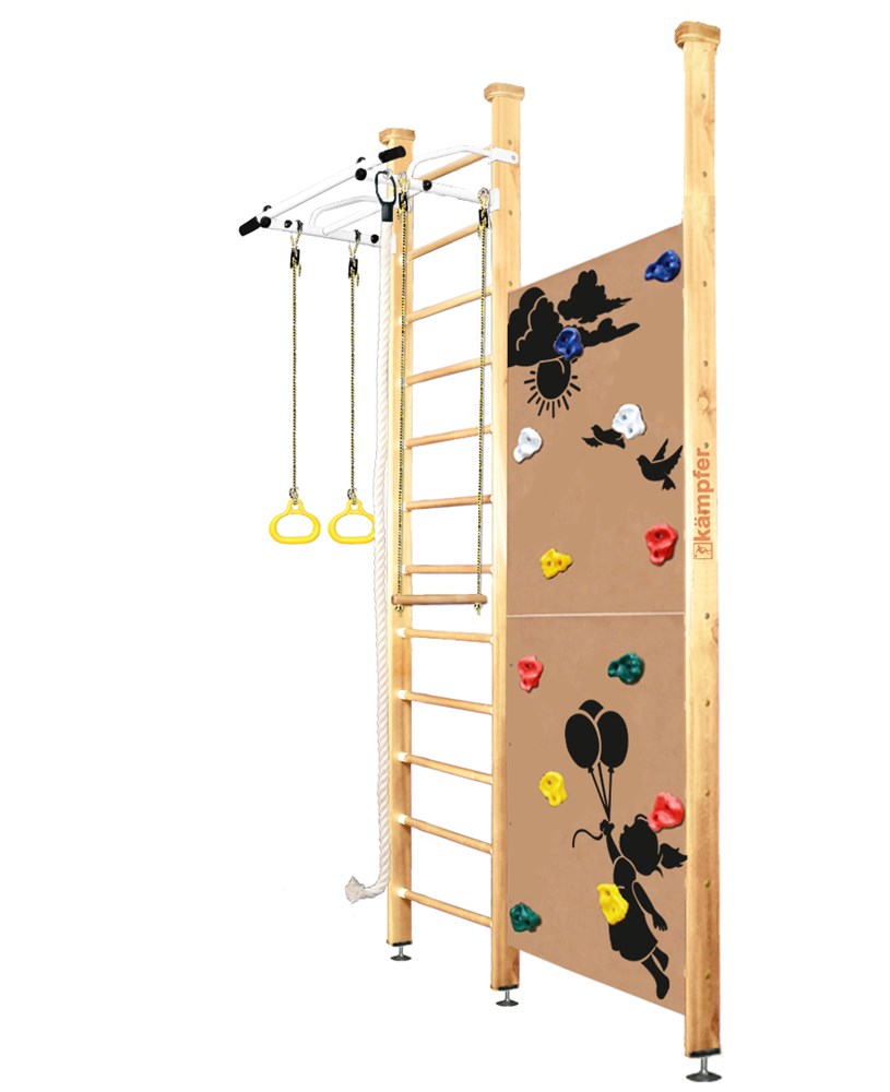 Домашний спортивный комплекс Kampfer Jungle Ceiling это классическая версия шведской стенки одной из самых популярных моделей из линейки деревянных ДСК Kampfer дополненная скалолазом с новым интересным дизайном для девочек и мальчиков. Распорная шведская стенка Jungle представлена в различной цветовой гамме, что позволяет подобрать нужный оттенок под дизайн помещения.