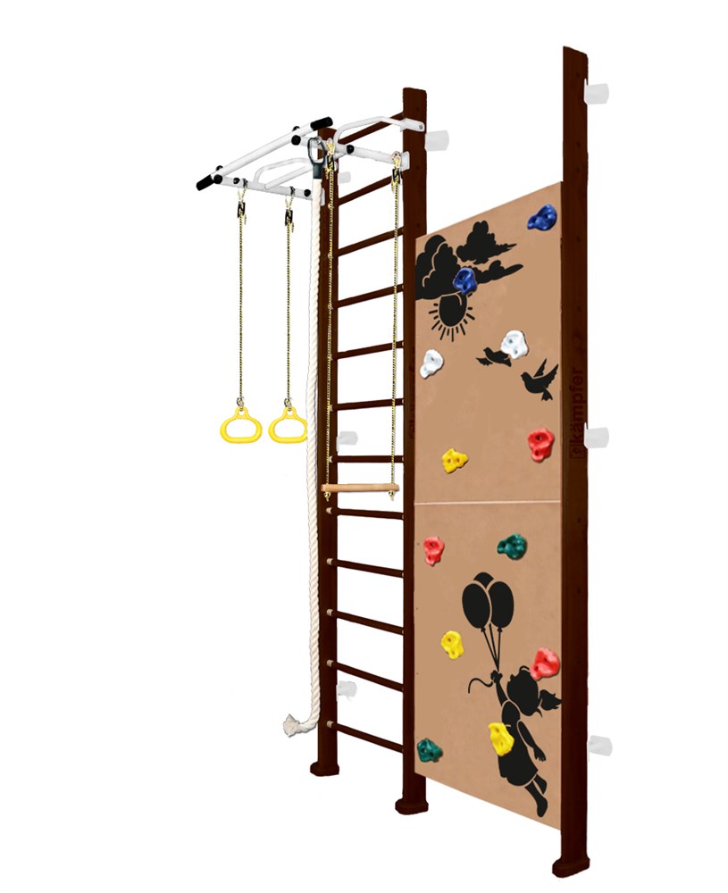 Шведская стенка Kampfer Jungle Wall Girl [№5 Шоколадный Высота 3 м белый турник]