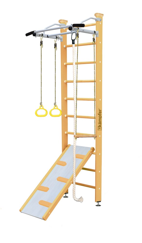 Шведская стенка Kampfer Ride Ceiling - это деревянный детский спортивный комплекс, который крепится враспор между полом и потолком.