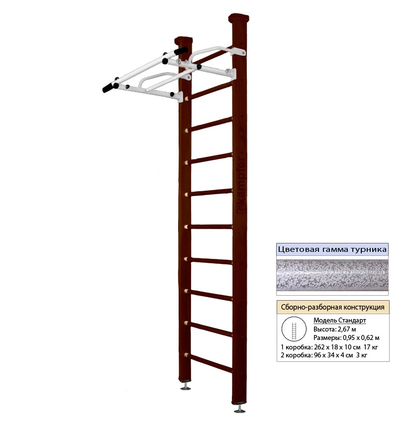 Шведская стенка Kampfer Swedish Ceiling [№5 Шоколадный Стандарт белый антик турник]