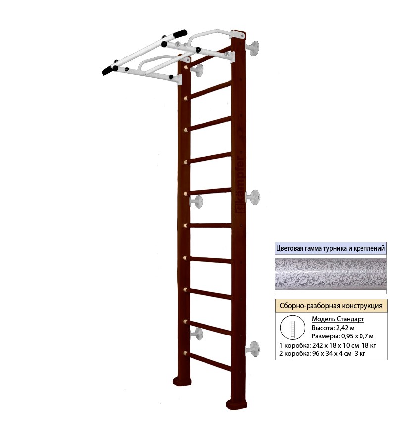 Шведская стенка Kampfer Swedish Wall [№5 Шоколадный Стандарт белый антик турник]