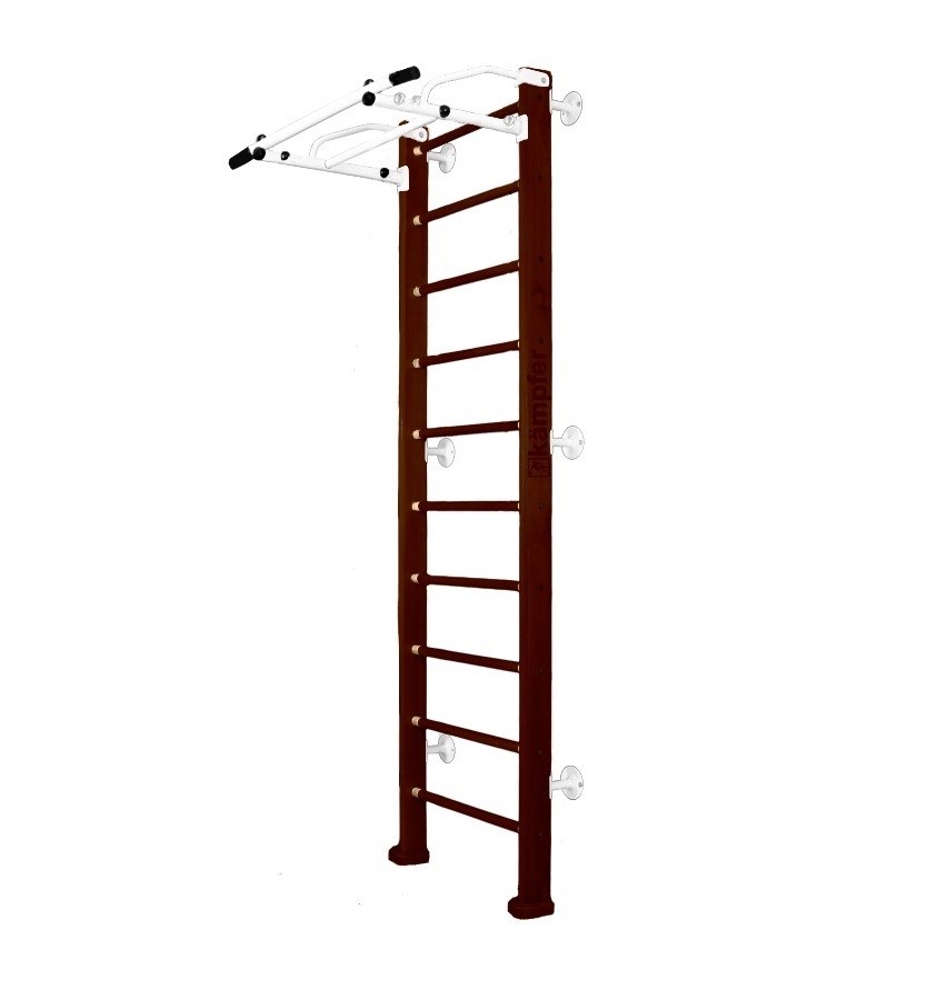 Цвет шведской стенки - темно-коричневый, что придает ей стильный и современный вид. Название цвета от производителя - №5 Шоколадный Стандарт белый турник.