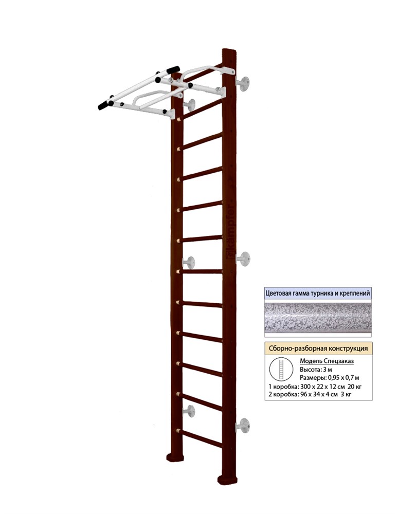 Шведская стенка Kampfer Swedish Wall [№5 Шоколадный Высота 3 м белый антик турник]