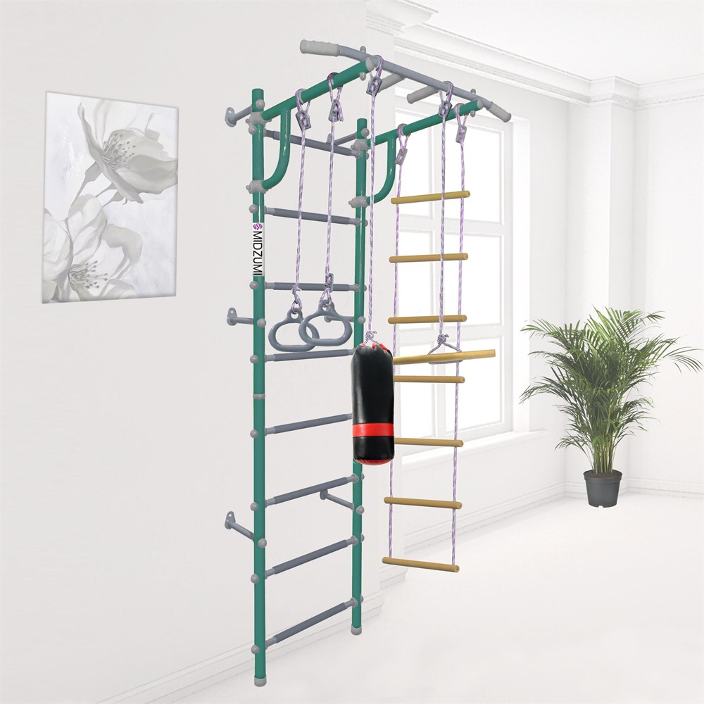 Шведская стенка Midzumi Banji Kabe Boxing (ментоловый сорбет) - это уникальный комплекс, разработанный Торговым Домом Midzumi специально для маленьких непосед, мечтающих стать профессиональными боксерами.