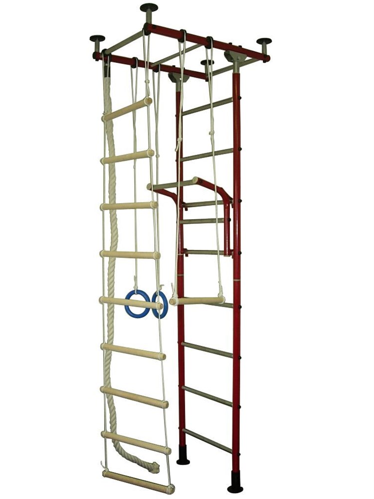 Комплектация:: металлическая лестница, турник навесной, кольца гимнастические, лестница веревочная, трапеция, канат х/б, руководство по сборке.