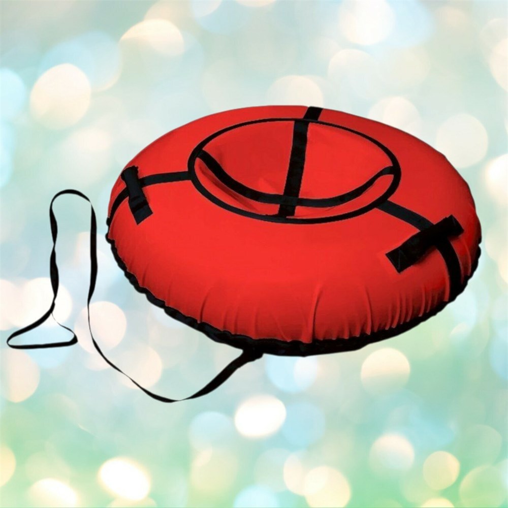 Чехол тюбинга изготовлен из двусторонней армированной ПВХ ткани плотностью 630 г/кв.м, что обеспечивает повышенную прочность и устойчивость к морозам до -20°. Глянцевое дно отлично скользит по снегу и легко очищается от грязи.