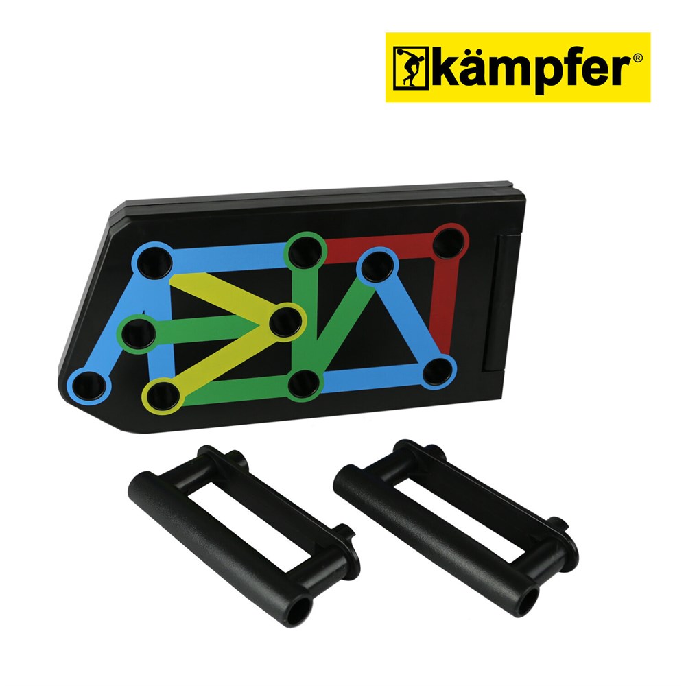 Многофункциональная компактная платформа для отжимания Kampfer позволяет превратить домашнее пространство в тренажерный зал: укрепить и прокачать мышцы на уровне силового тренажера. Доска для упоров выполнена из прочного, но легкого пластика. Платформа складывается, что удобно для хранения и перемещения в любое место. Удобные упоры для отжиманий позволяют тренироваться под разными углами наклона, создавая разную нагрузку. Подходят не только профессиональным спортсменам, но и начинающим. Тренировки с платформой Kampfer безопаснее обычных отжиманий от пола в связи с тем, что упоры позволяют снять дополнительную нагрузку с суставов рук. Для воздействия на разные группы мышц предусмотрена установка ручек на разной ширине и в разных положениях, используя цветные линии.